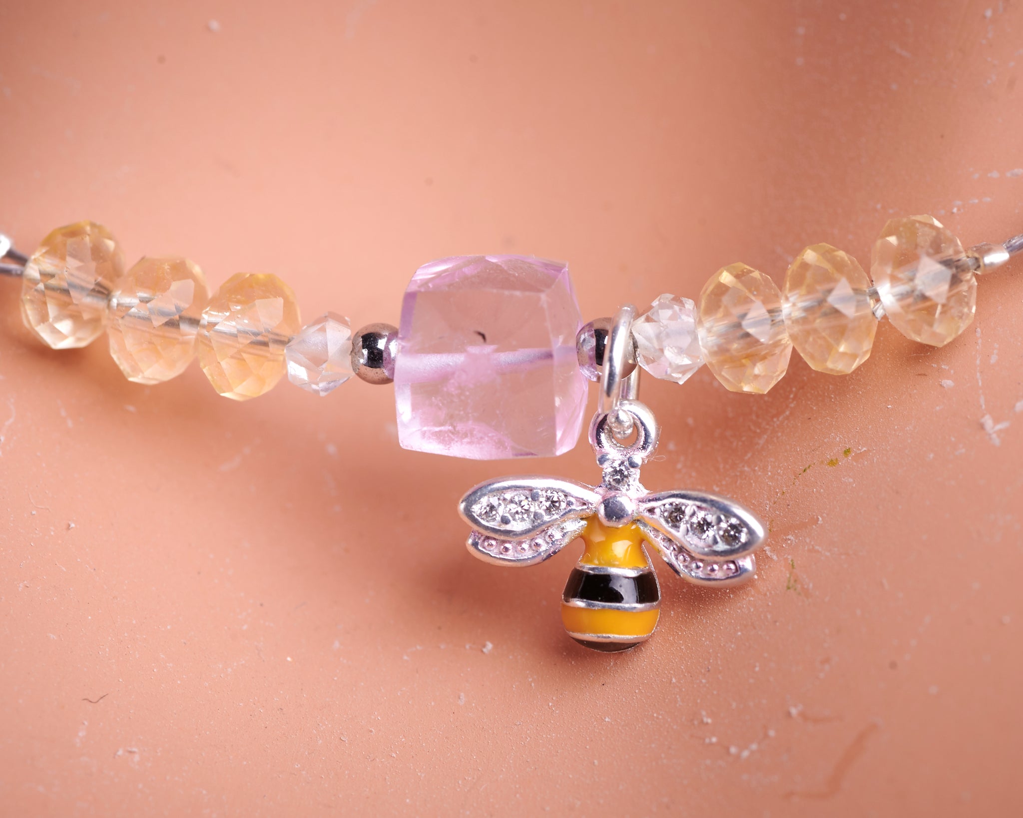 Amethyst Citrine Herkimer Diamond Bee Necklace
