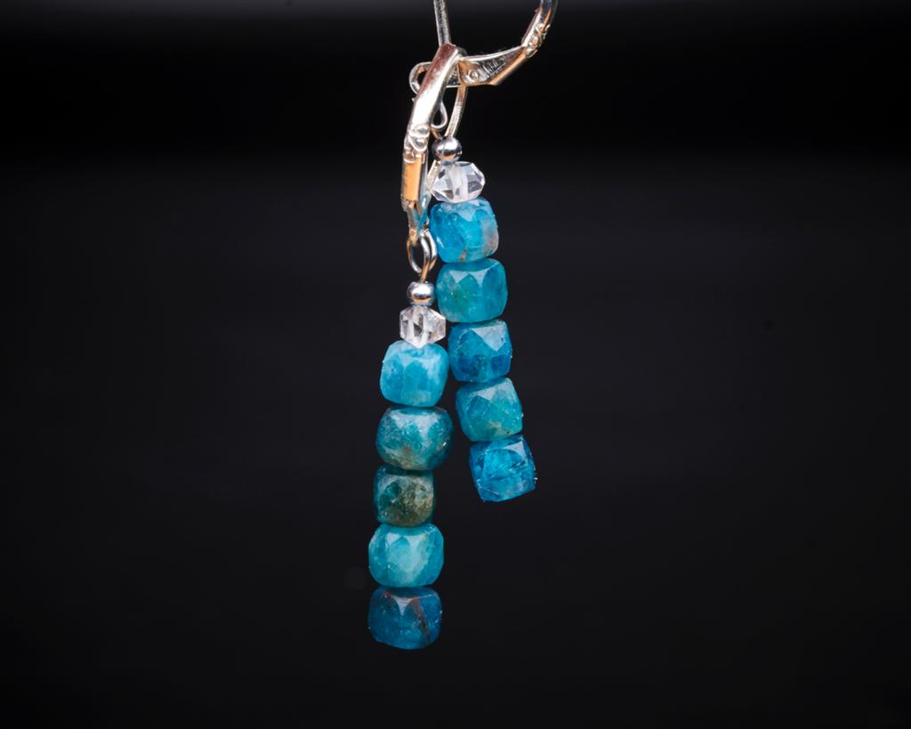 Genuine untreated blue Apatite raw NY Herkimer Diamond Sterling silver delicate earrings 30mm long