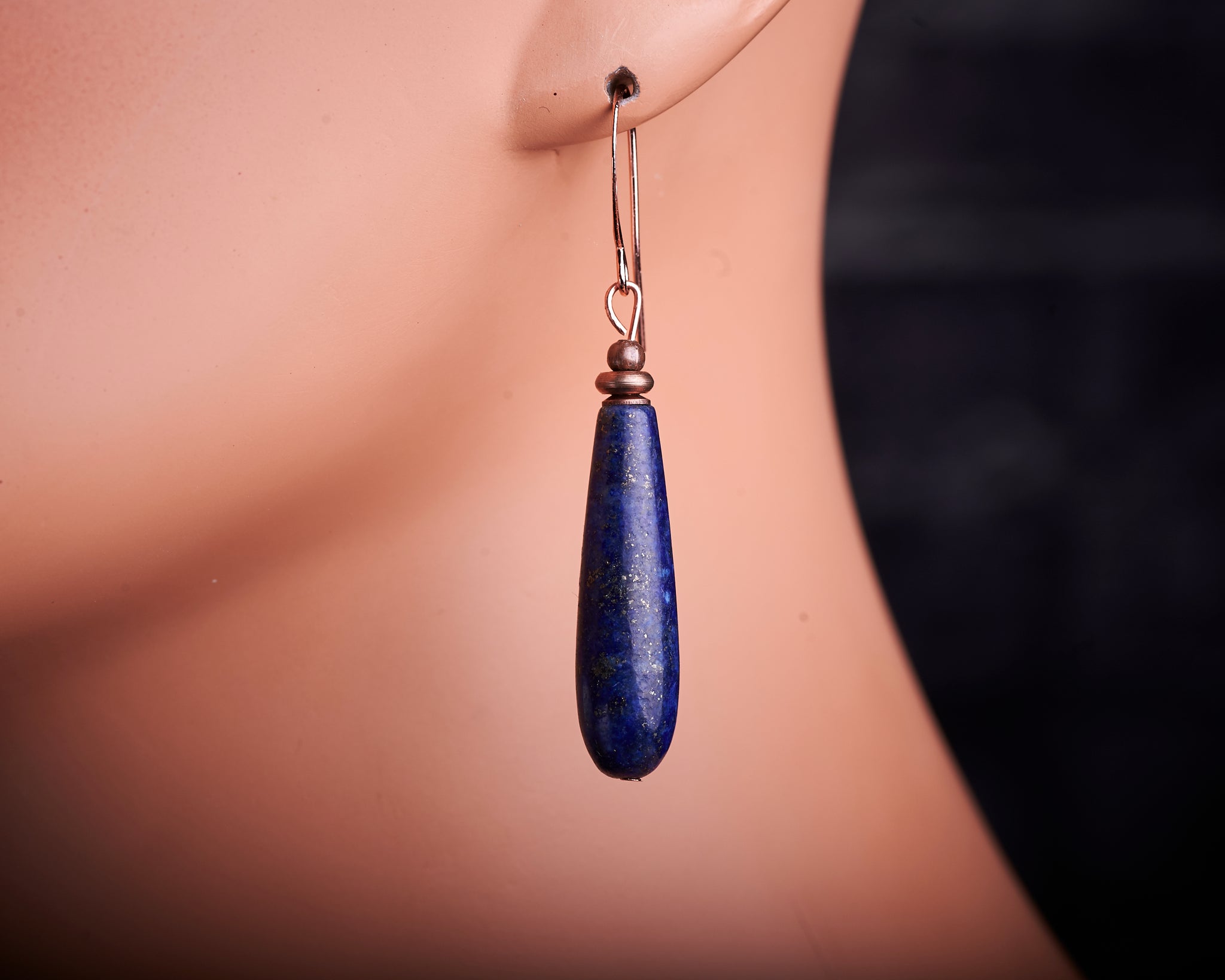 Genuine Lapis Lazuli Teardrop Solid Copper Long Drop Earrings 35mm long