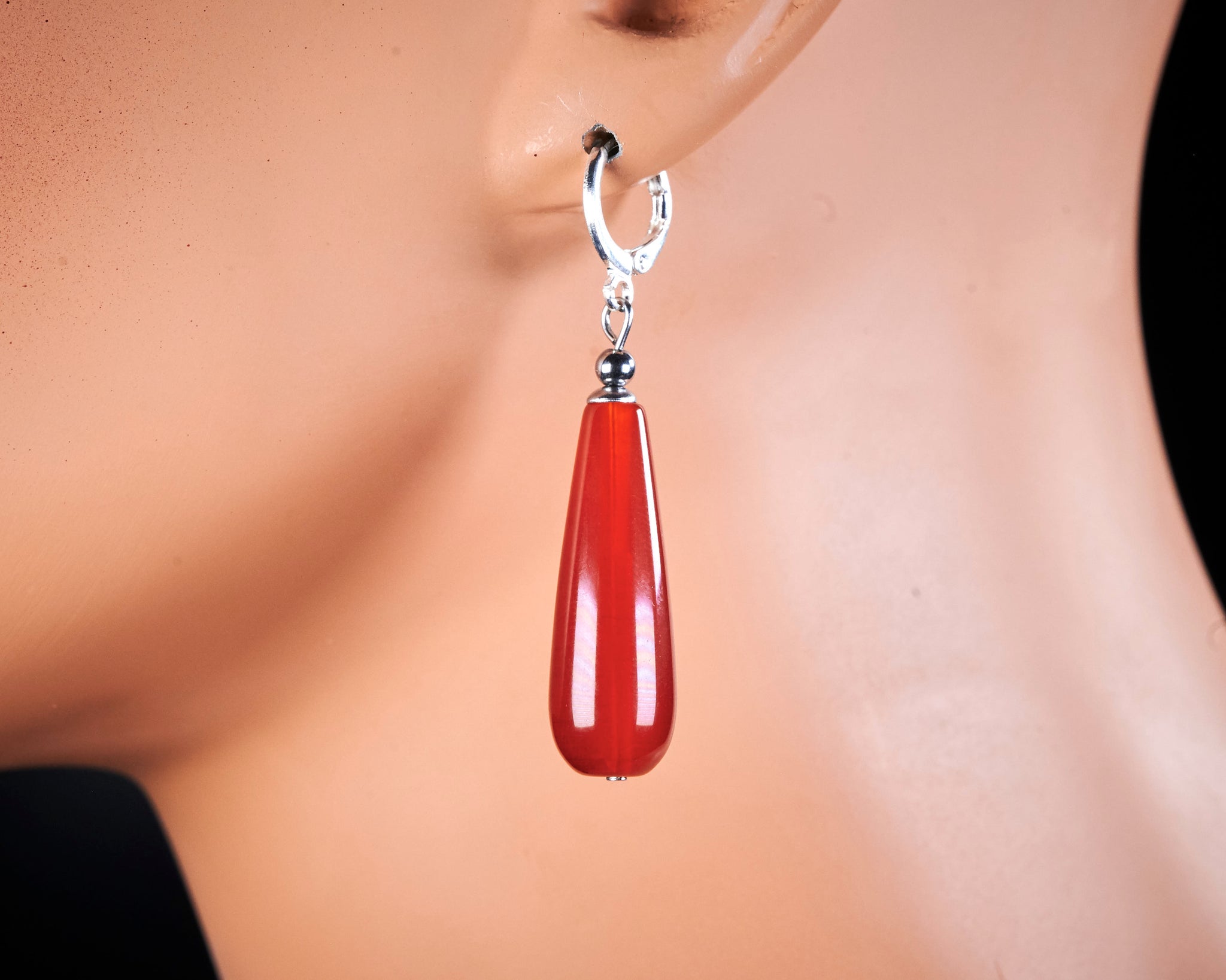 Long Carnelian Teardrop Earrings