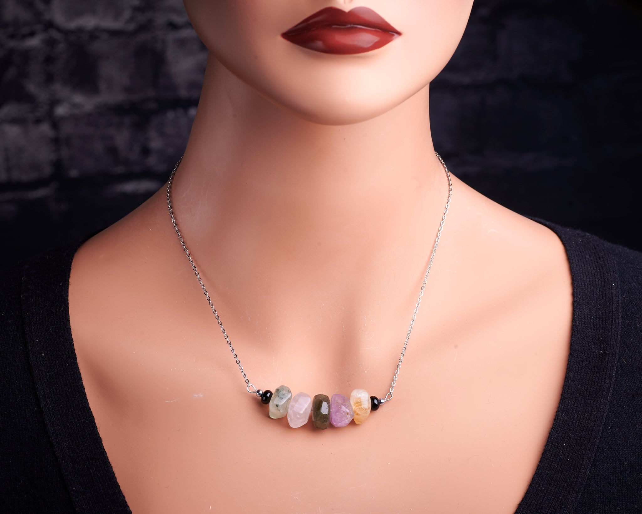 Genuine nugget multi stone quartz yellow Citrine purple Amethyst Labradorite green Prehnite Rose quartz black tourmaline spiritual necklace