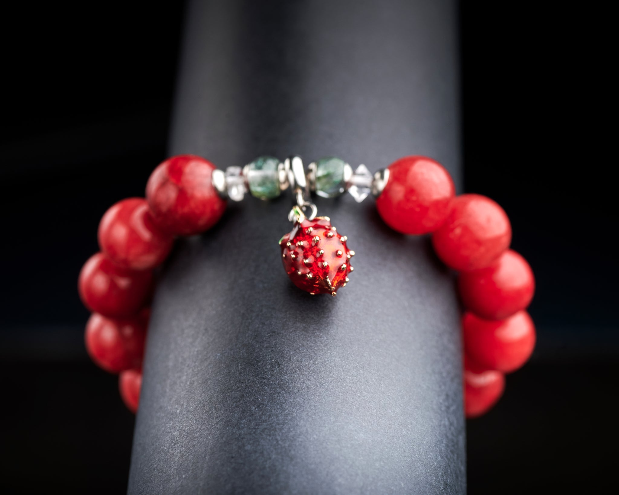 Natural Red Agate 10mm Raw NY Herkimer diamond green ghost phantom quartz strawberry charm statement stretch bracelet